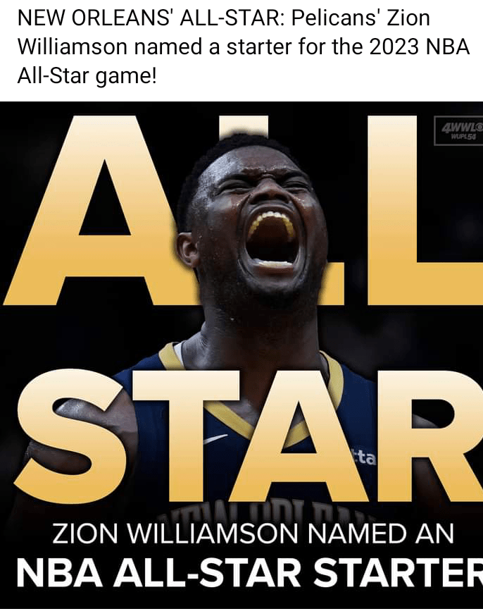 JESUS H. CHRIST!! Pelicans’ #ZionWilliamson is named as a starter on the #NBA All-Star team. #Hallelujah!