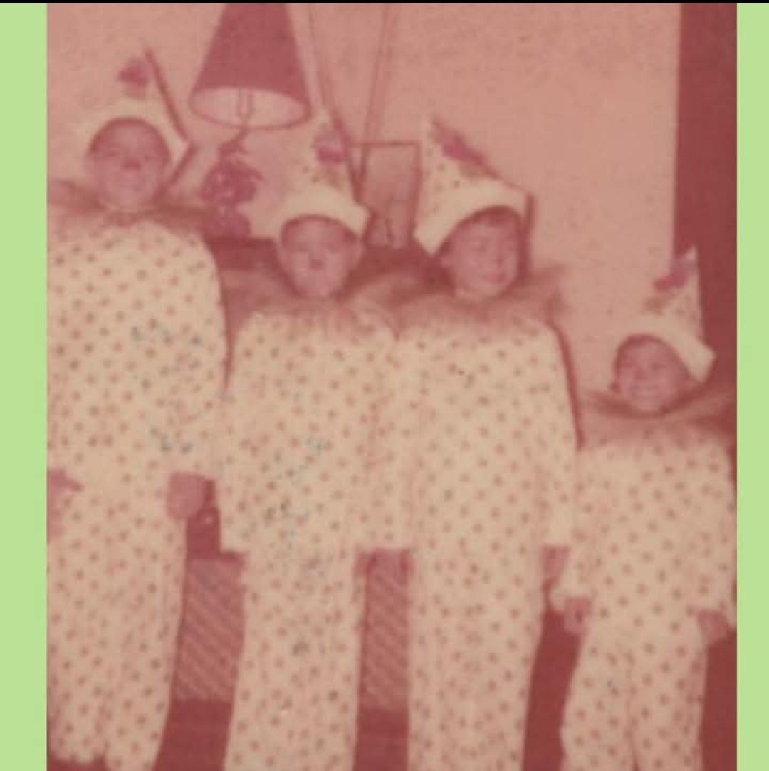 This is how we look now since mama had three more children⬇️, (l-r) Karen, Gail, Alan (far right).