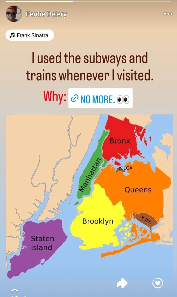 I no longer want to ride the subways and trains in New York. I have been reading about all of the crimes on the subway lines. The subways and trains take you anywhere you want to go; many people there do not even own cars. But the news paints bad statistics. I complained, and many New Yorkers called me a chicken. ⬇️⬇️ Click: