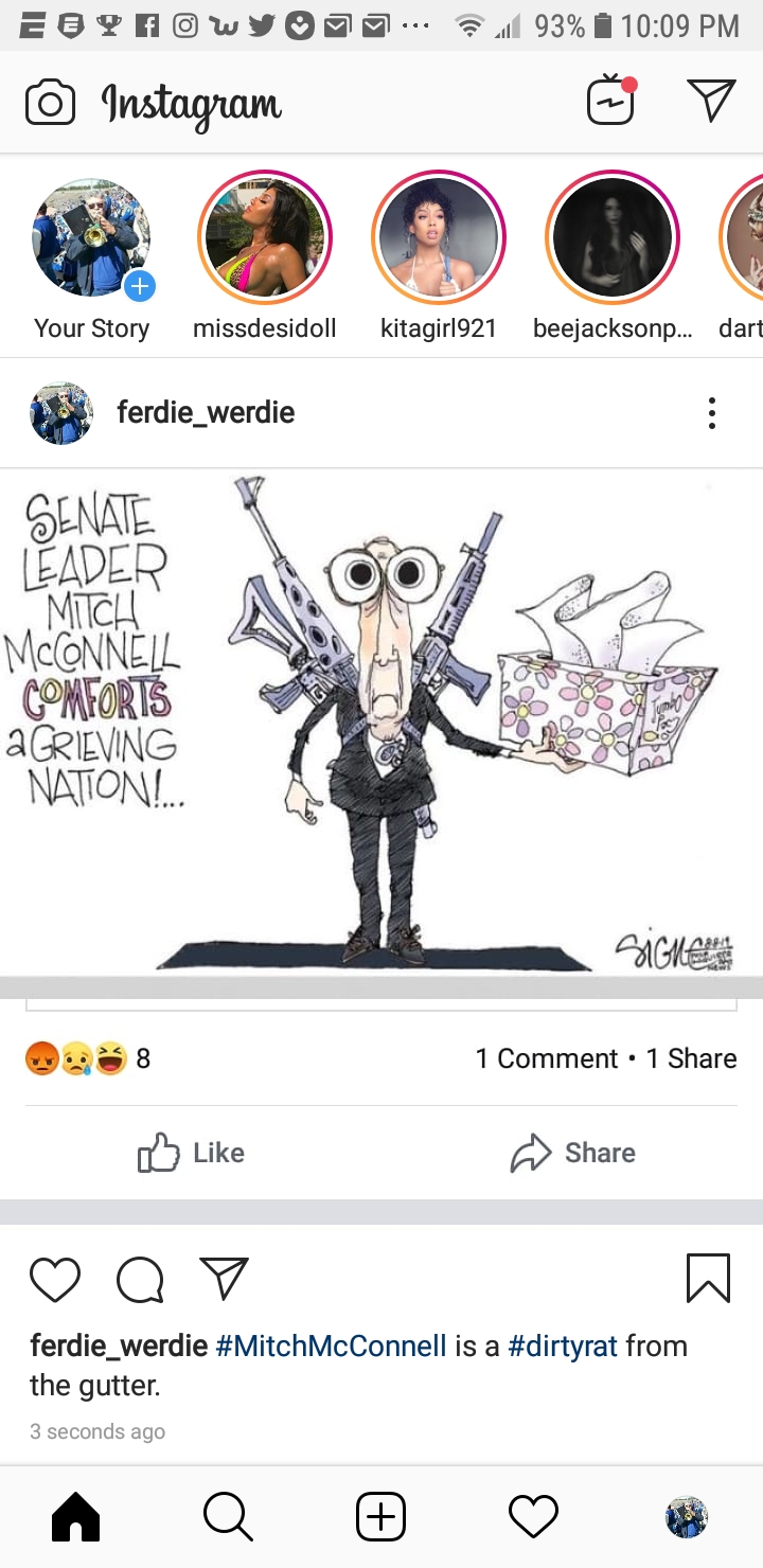 Oh, my God! #MitchMcConnell is a #dirtyrat. That cheese-eating son-of-a-gun has been shutting down everything in our country for the last 10-1/2 years.